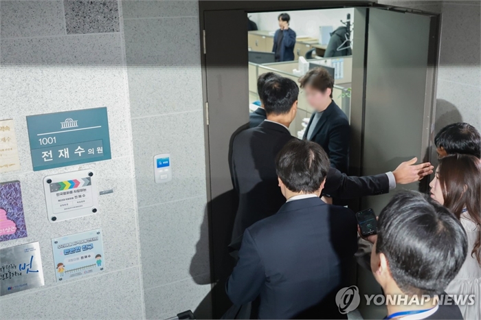 전재수 의원실의 경우 압수수색 소식이 언론 보도를 통해 알려진 지 3시간이 지난 이날 오전 11시 20분께에서야 경찰 수사관들이 들어섰다.