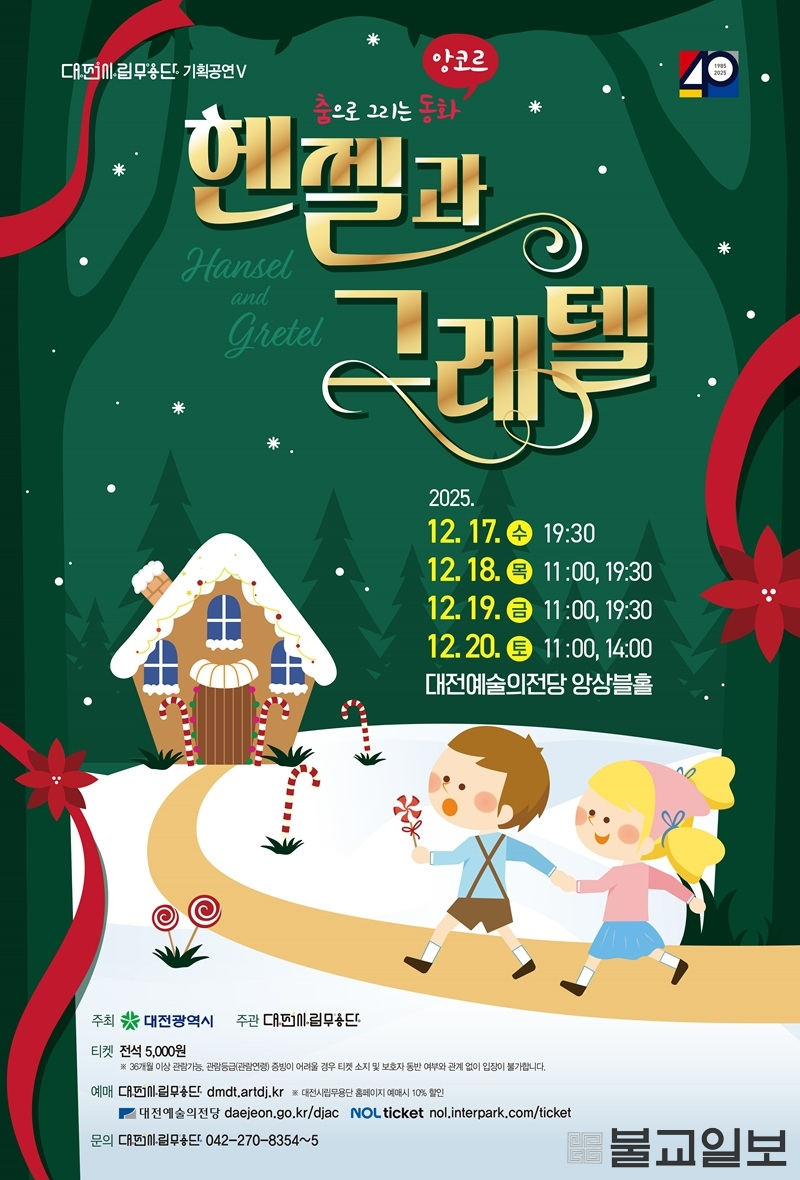 김수현 대전시립무용단 예술감독은 “연말을 맞아 가족과 함께 따뜻한 추억을 만들 수 있는 무대가 되길 바란다”며 “춤으로 전하는 동화의 감동을 많은 시민이 함께 나누길 기대한다”고 말했다.
