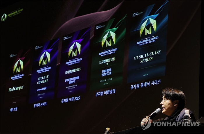 발언하는 이종규 조직위원장 (서울=연합뉴스) 이재희 기자 = 22일 서울 종로구 홍익대 대학로 아트센터에서 열린 제10회 한국뮤지컬어워즈 기자간담회에서 한국뮤지컬어워즈 조직위원장을 맡은 이종규 한국뮤지컬협회 이사장이 발언하고 있다. 2025.12.22 scape@yna.co.kr