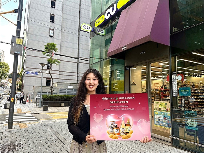 CU, 주류 예약·픽업 서비스 '카카오톡 선물하기' 입점 (서울=연합뉴스) 편의점 CU는 주류 예약·픽업 서비스인 'CU 바(BAR)'가 카카오톡 '선물하기'에 입점한다고 지난 11월 16일 밝혔다. 모델이 'CU 바' 서비스를 소개하고 있다. 2025.11.16 [BGF리테일 제공. 재판매 및 DB 금지] photo@yna.co.kr