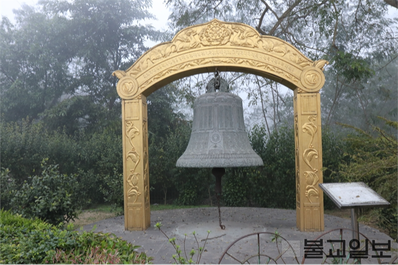 붓다 탄생지 룸비니 입구에 서 있는 커다란 종