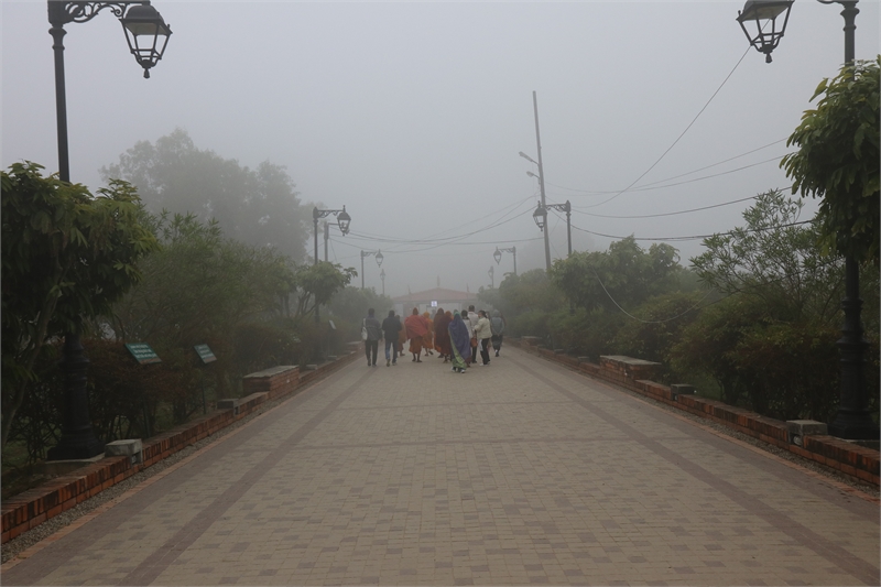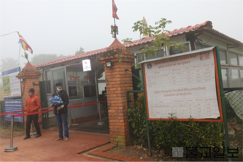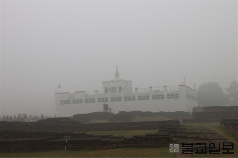 안개 덮힌 붓다 탄생지 룸비니를 바라보며 입구에서부터 몸과 마음을 단정하게....