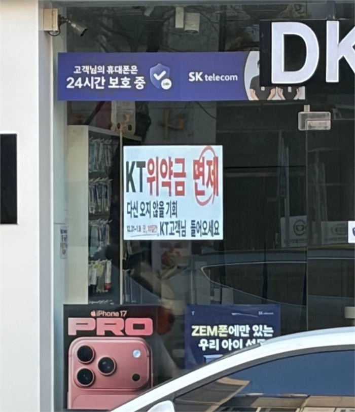 그런데도 일부 유통망에서는 'KT 위약금 면제'를 전면에 내세운 문자 메시지 발송, 현수막 게시 등 공격적 유치 행위가 이어지고 있다. 다만 이통사들은 본사 차원에서 홍보를 권유한 사실은 없다는 입장이다.