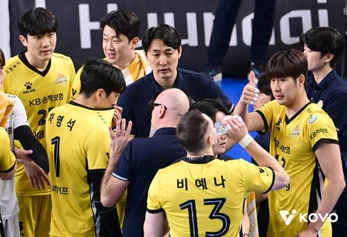 작전 지시하는 하현용 KB손해보험 감독대행(중앙) [한국배구연맹 제공. 재판매 및 DB 금지]