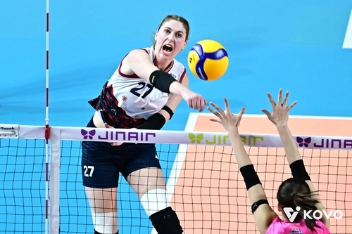 공격하는 현대건설의 카리(왼쪽) [한국배구연맹 제공. 재판매 및 DB 금지]