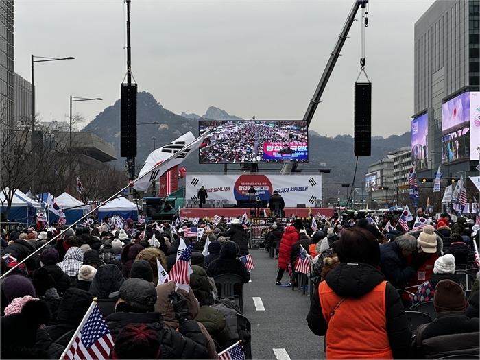 연사들은 전날 법원이 평양 무인기 의혹을 받는 윤석열 전 대통령에 대해 구속영장을 발부한 것을 비판했다.