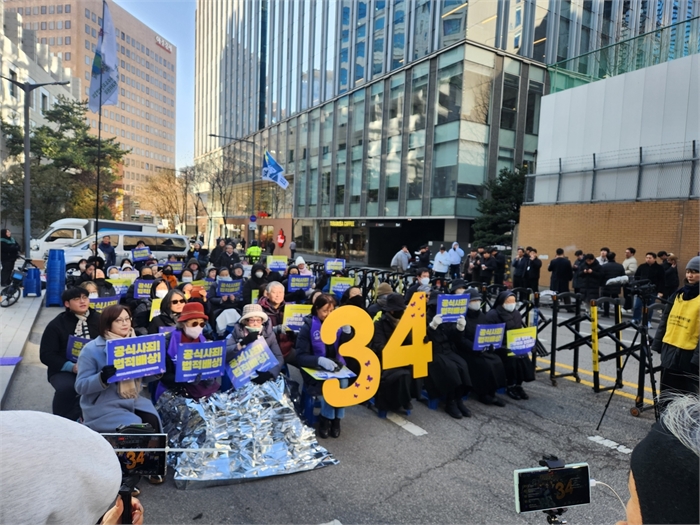 같은 시각 정의기억연대는 바로 옆 연합뉴스빌딩 앞에서 '제1734차 일본군 성노예제 문제해결을 위한 정기 수요시위'를 열었다.