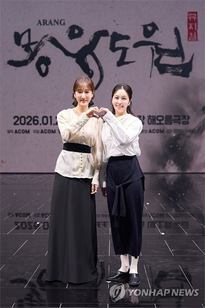 뮤지컬 '몽유도원' 제작발표회 (서울=연합뉴스) 7일 화성예술의전당 동탄아트홀에서 열린 뮤지컬 '몽유도원' 제작발표회에서 유리아(왼쪽)와 하윤주가 포즈를 취하고 있다. 2026.1.7 [에이콤 제공. 재판매 및 DB 금지] photo@yna.co.kr