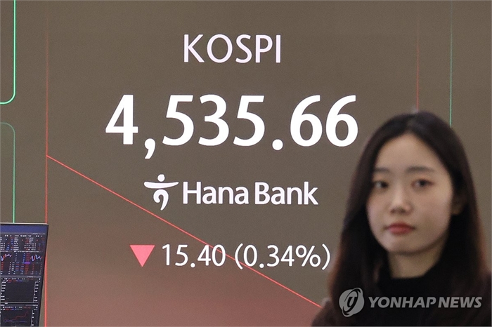 (서울=연합뉴스) 이민영 기자 = 코스피가 8일 하락 출발해 4,530대를 나타내고 있다.