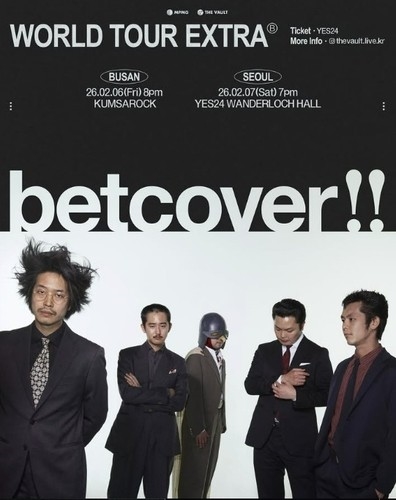 '후지 록 페스티벌' 등에 출연한 일본 인디 밴드 벳커버는 부산 공연도 예정하고 있다. 이들은 다음 달 6일 금사락에서 부산 공연을 개최한 뒤 7일 서울 예스24원더로크홀에서 공연을 이어간다.